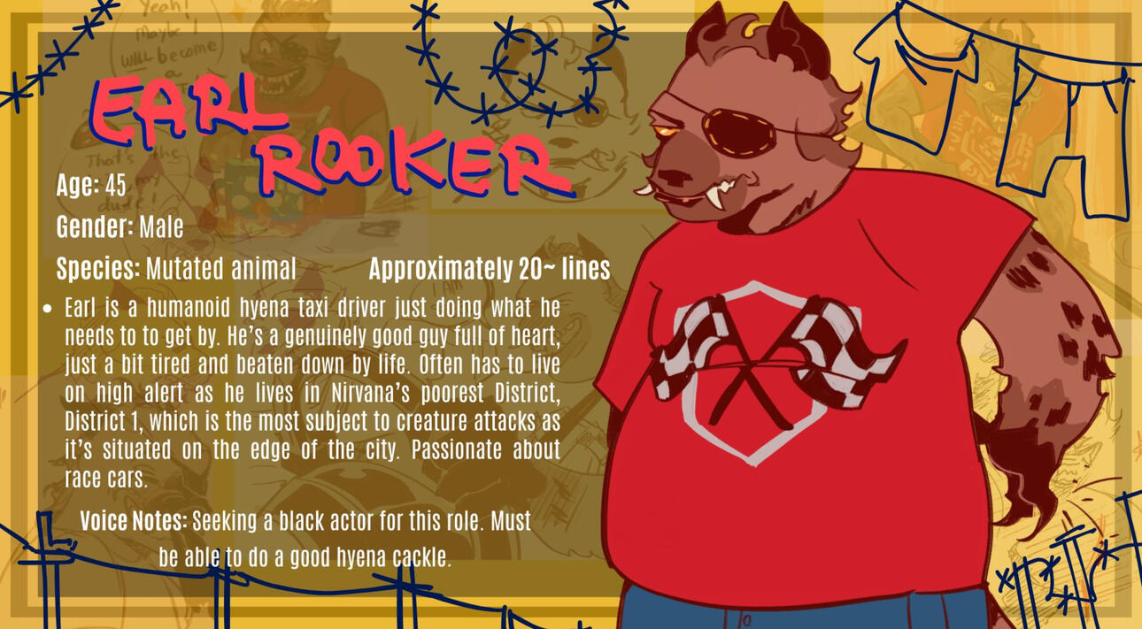 Post post-apocalyptic earth, now called New Earth. People don’t even remember what year it is anymore, so they just reset the calendar. All life on Earth has mutated and changed as a result of powerful radiation, various alien invasions and technological renaissances. The only ones left unaffected were the wealthy humans who could afford to escape the planet, before coming back aeons later. The main backdrop of the plot is Nirvana (geographically what once was Ohio, USA), a brutalist haven with retro sci-fi and 80s neon era influences crowns the pseudo-capital of Ocellus, a loosely deemed country which more resembles a scattered cluster of cities. In the middle of the harsh desert that has replaced all other ecosystems, Nirvana is a city that never sleeps, and where in between the raging parties and the sieges, tendons of history connect to the occult underbelly of the world...